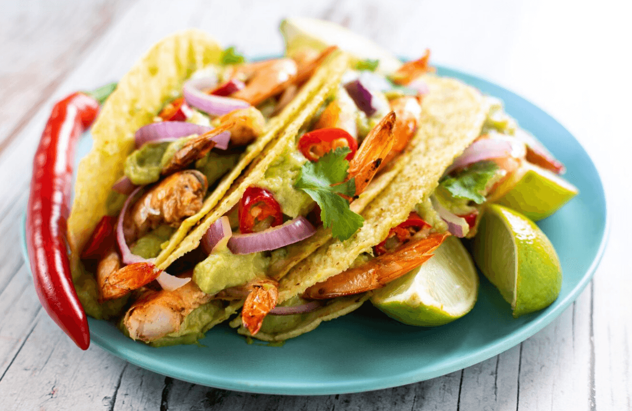 - Top with shredded cabbage, tomatoes, cilantro, avocado, and jalapeños.