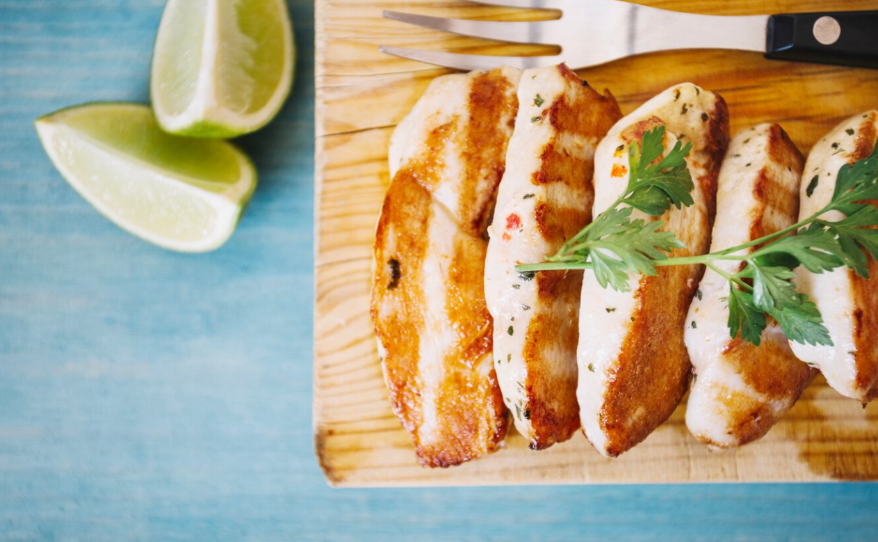 - Drizzle with olive oil and lime juice, then sprinkle fajita seasoning evenly over both sides.