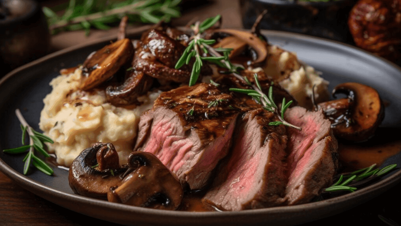 Enjoy your indulgent Roast Beef Tenderloin with Mushroom Ragout! 🥩🍄